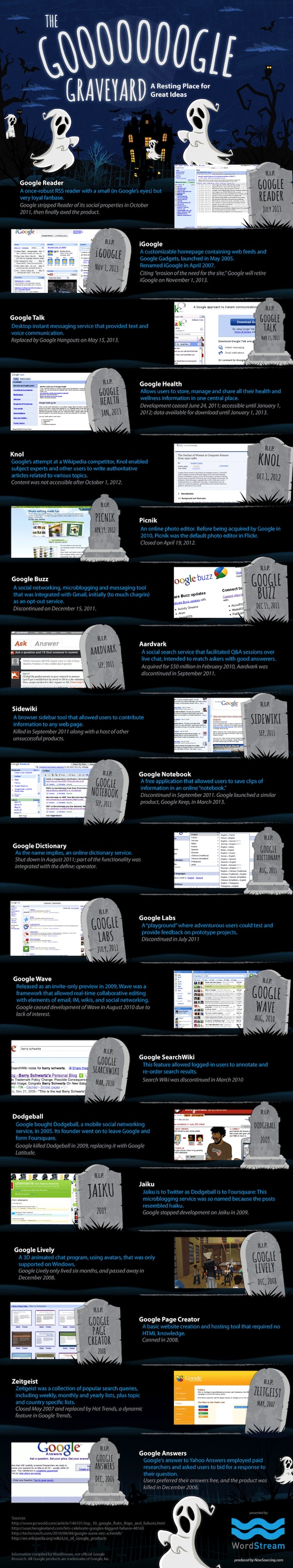 Ecco in un infografica tutti i flop di Google nel corso degli anni..alcuni davvero anonimi altri leggermente più famosi. Fai click per vedere immagine ingrandita!
